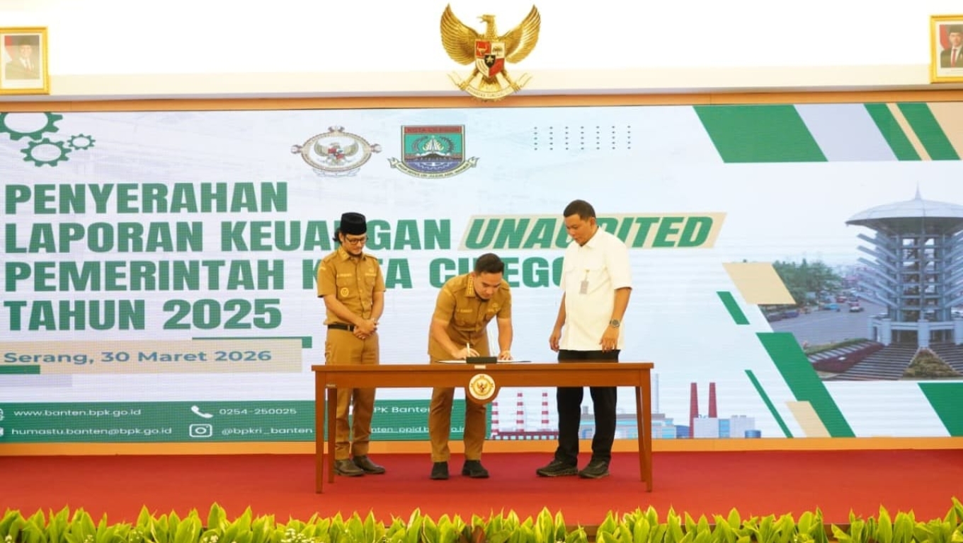 CILEGON, BabeBanten - Walikota Cilegon Robinsar dan Wakil Walikota Cilegon Fajar Hadi Prabowo kompak menghadiri kegiatan Penyerahan Laporan Keuangan Pemerintah Daerah (LKPD) Unaudited Tahun Anggaran 2025 bersama dengan Pemerintah Provinsi Banten dan seluruh Kabupaten/Kota se-Provinsi Banten yang dilaksanakan di Kantor Badan Pemeriksa Keuangan (BPK) Perwakilan Provinsi Banten, Senin (30/3/2026).
